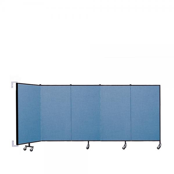 A perfect choice when you need to divide an area beginning at the same point repeatedly. Want your room divider to stay put? Wallmount dividers attach to a wall at one end and open out into the room with ease. The walls fold flat against the wall when stored.